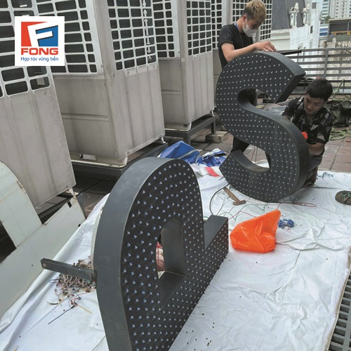 Dịch vụ sản xuất và lắp đặt chữ tôn sơn tĩnh điện gắn LED cắm bề mặt được chúng tôi thực hiện trọn gói, đảm bảo chất lượng và tính thẩm mỹ cao: